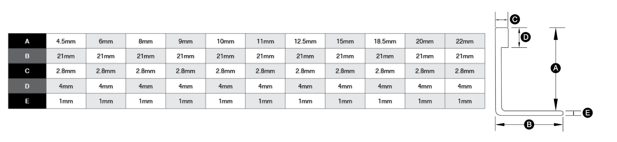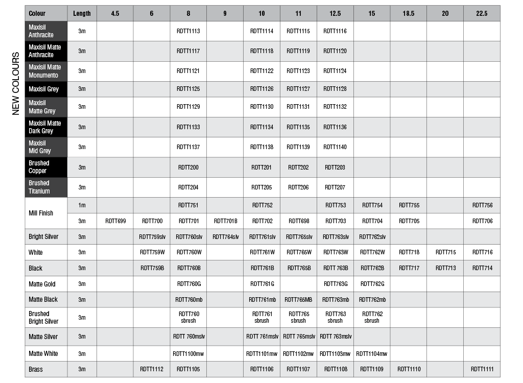 • 9mm Mill Finish Item Code: RDTT701B