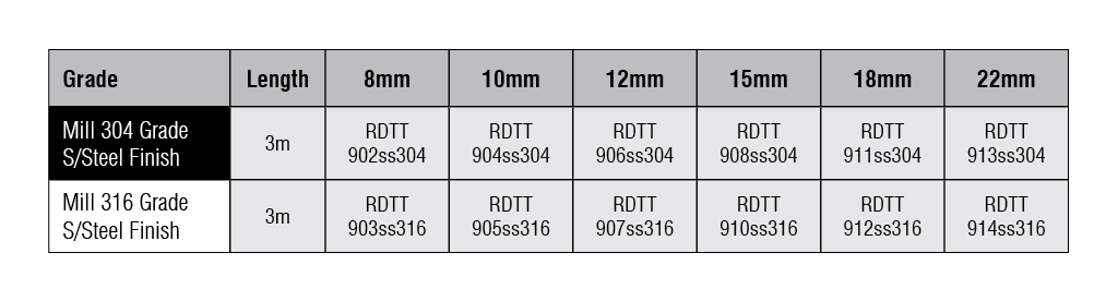 - Grade 316 18mm x 3m x 1mmv Item Code: RDTT912SS316